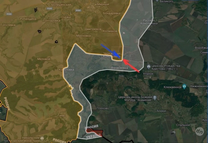 В свою очередь Telegram-канал "Русская Весна" пишет о том, что в течение суток группировка войск "Север" продолжила активные наступательные действия в районе Фанасеевки и Черкасской Конопельки, где с 6-го февраля остаются остатки подразделений ВСУ, пытавшиеся к прорваться к н.п. Уланок.