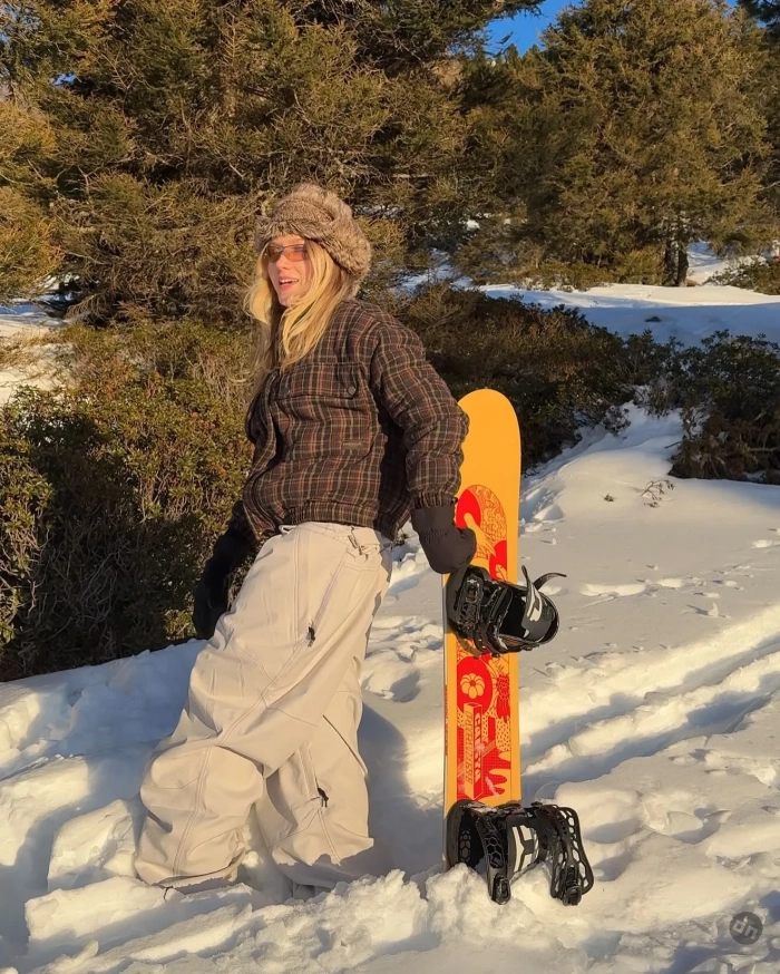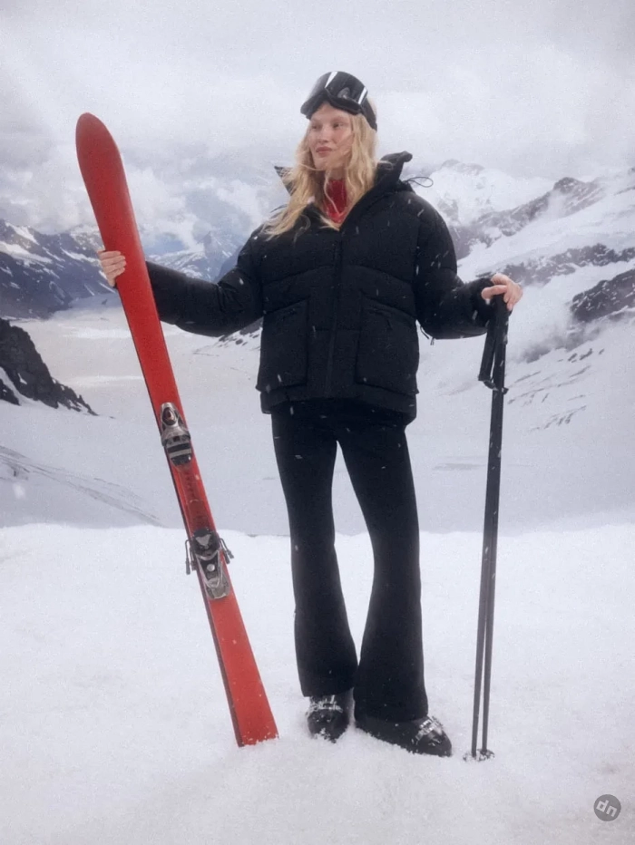 Самый удобный вариант одежды на склоне — конечно, комбинезон. Он плотнее прилегает к телу, поэтому шанс оголить или простудить спину минимален, да и выглядит максимально модно. Советуем поискать тот самый вариант для себя в винтажных лавках или просто собрать монообраз из куртки и брюк у известных брендов.