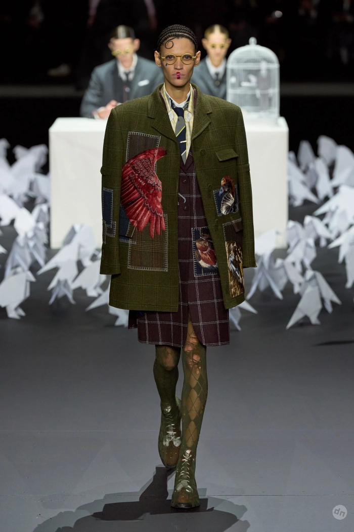 Кара Делевинь/Фото: Udo Salters/Getty ImagesКара Делевинь/Фото: Udo Salters/Getty ImagesЭдриан Броуди/Фото: imacheesecake/Instagram*Эдриан Броуди/Фото: katya_newyork/Instagram*Лаки Блю Смит/Фото: imacheesecake/Instagram*Куин Латифа, Кара Делевинь, Кристин Милиоти и Керри Вашингтон/Фото: Udo Salters/Getty ImagesКристин Милиоти и Керри Вашингтон/Фото: Udo Salters/Getty ImagesВ показе осеннего сезона Thom Browne приняли участие российские топ-модели нулевых: 34-летняя Дарья Строкоус и 38-летняя Анна Вьялицына. Дизайнер представил коллекцию, вдохновлённую птицами. Модели выходили на подиум в костюмах в фирменную клетку, плиссированных юбках с орнаментом, жакетах с вышивкой традиционного серого и ярких цветов. Образы дополняли яркие длинные ногти и накладные ресницы.