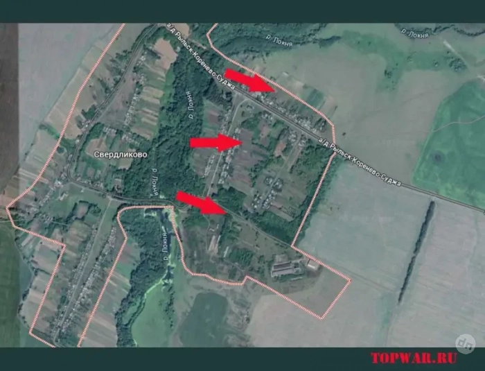 К настоящему моменту поступает информация о том, что после форсирования реки Локня более трёх четвертей площади села Свердликово перешло под контроль российской армии.