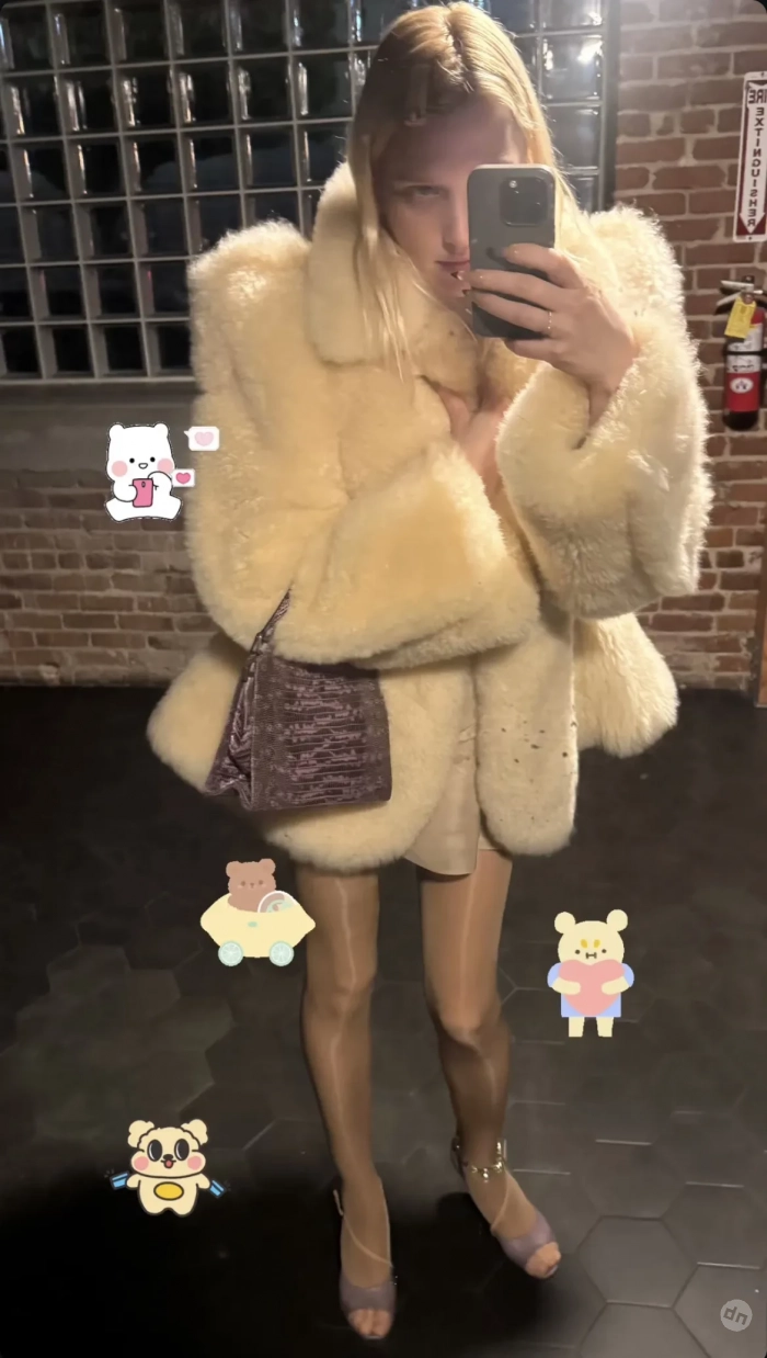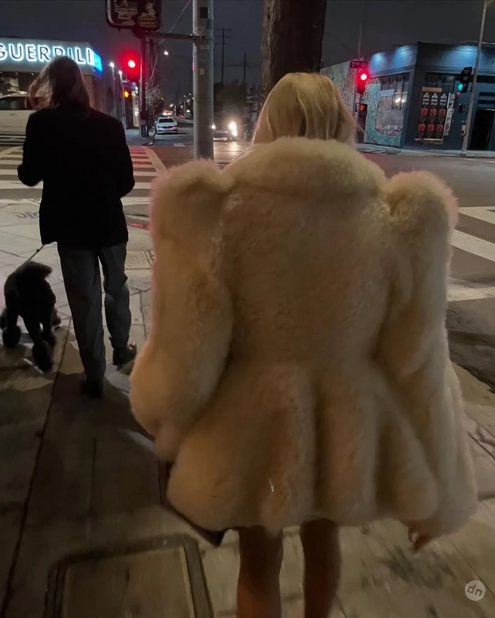 Лотта нарядилась в шубу ванильного цвета Phoebe Philo стоимостью 7 700 фунтов стерлингов (около 873 тысяч рублей). В такой же недавно выходила в свет Кендалл Дженнер. Образ Волкова дополнила блестящими колготками с босоножками и фиолетовой сумкой со змеиным принтом. Компанию главной стилистке модного дома Miu Miu в день рождения составили её бойфренд Артём, пудель Димитрий и друзья из модной индустрии.