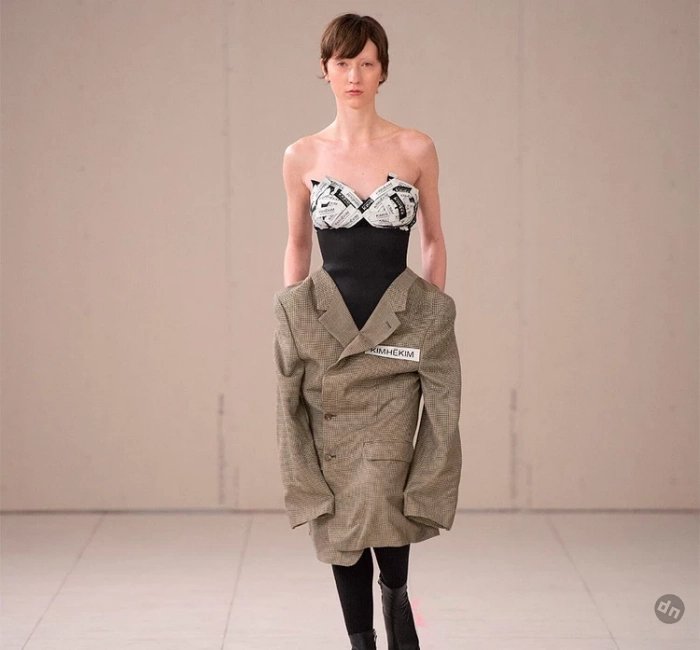 kimhekim.comВ юбке от корейского бренда Kimhekim вы произведете впечатление в любой компании. Мне кажется, она бы понравилась (и даже подошла) Ксении Собчак, которая любит «сложные» вещи. Фишка юбки в том, что это пиджак, который как будто спустился на талию. А руки дизайнер Kiminte Kimhekim предлагает засунуть прямо в плечи, вернее, в карманы. Цена концептуальной юбки — почти 258 000 рублей.