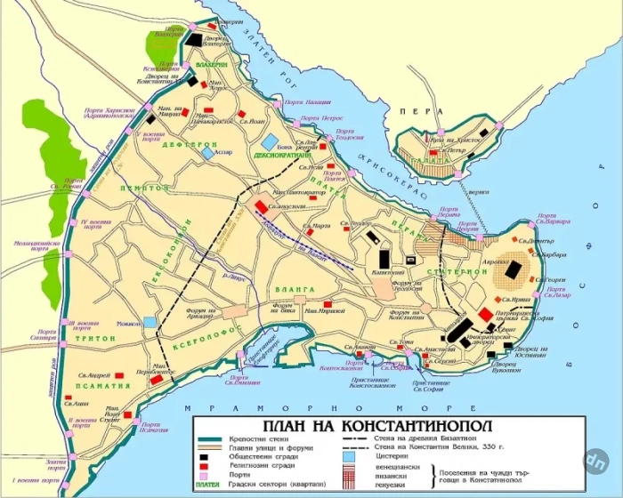 К гомилиям мы обратимся несколько позднее, а пока ключевое обстоятельство, на которое поколения историков не обращали никакого внимания. Какие были порты и стены у Константинополя на момент этого нападения. Вот это невнимание к ключевому обстоятельству, которое определяет анализ события, мне совершенно непонятно. Конечно, я что-то мог пропустить в обширной и труднообозримой историографии вопроса, но в тех работах, которые я читал, укреплениям столицы Византии не уделялось никакого внимания. Так, почти что беззащитный город.