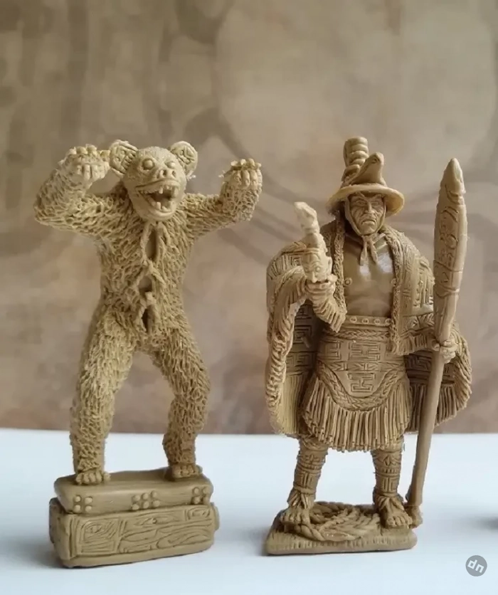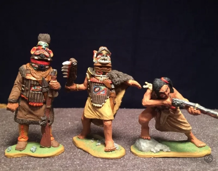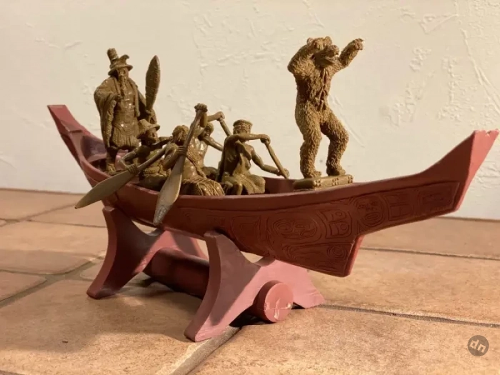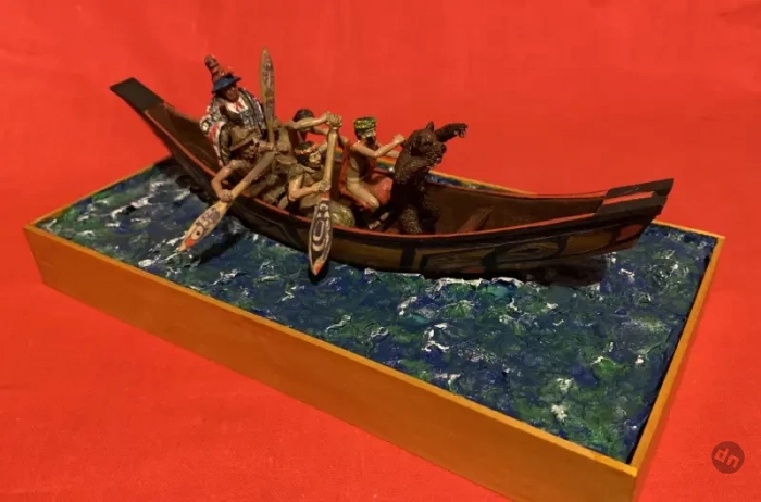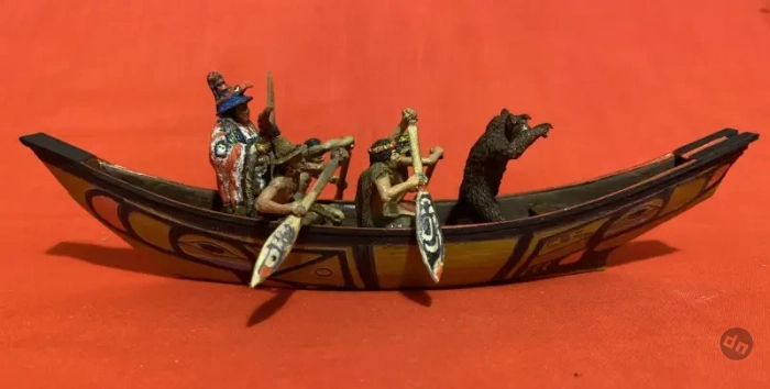 Но тут мне на помощь пришёл в Интернет и премного удивил предоставленной мне информацией. Оказывается, у нас в России существует компания-производитель фигурок солдатиков из мягкой пластмассы (для игры детям!), которая называется «Студия «Человечек». И вот она-то, как оказалось, делает фигурки индейцев тлинкитов, как занятых вполне мирными делами, так и облачённых в пышные боевые доспехи и с оружием в руках. Её руководитель Иван Костенко сам же их и ваяет, сам и штампует, а продаются его фигурки во многих «магазинах солдатиков» в РФ. Причём самое интересное, что к одному из наборов фигурок он сделал ещё и ладью, да ещё и покрыл её борта прихотливыми узорами. Ну так и это ещё не всё, как оказалось!