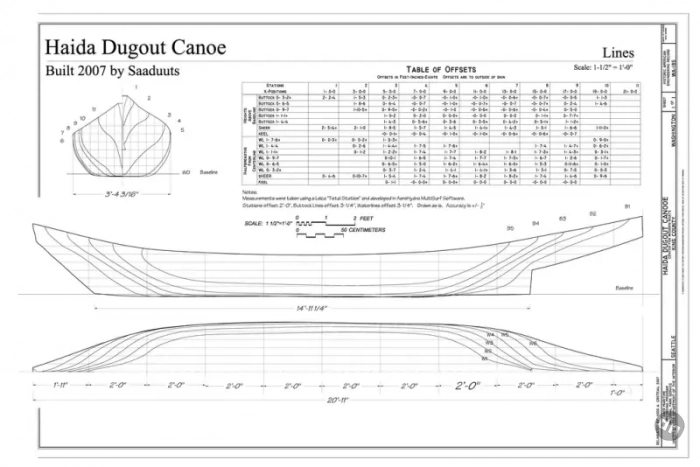 Теоретический чертёж пироги хайда