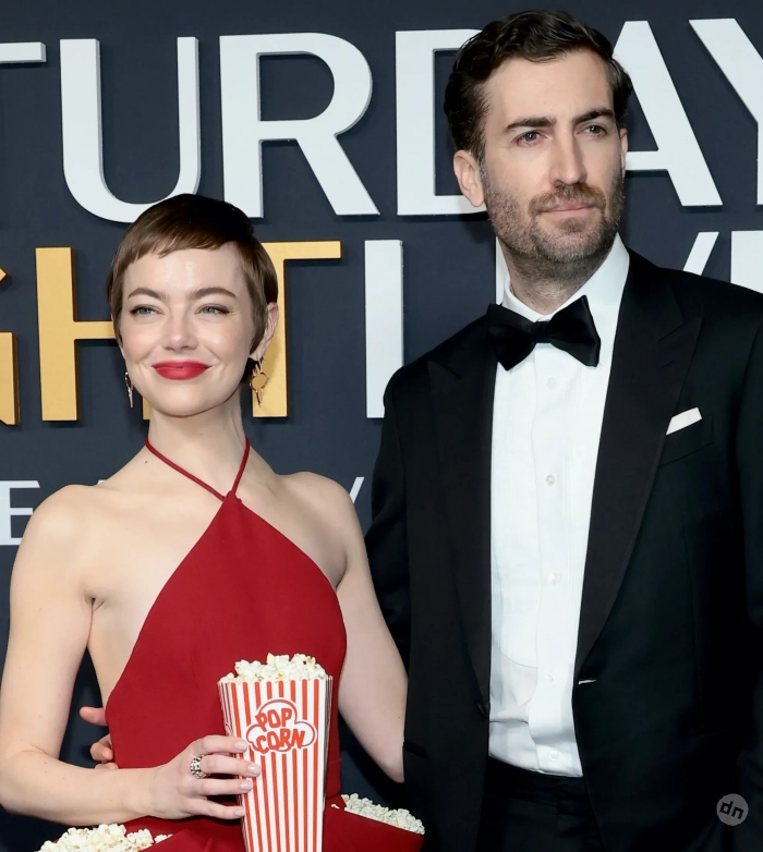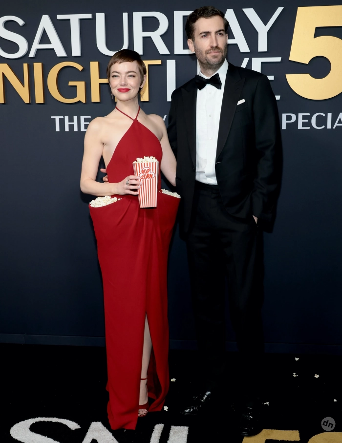 Эмма Стоун и Дейв Маккери/Фото: Dimitrios Kambouris/Getty ImagesЭмма Стоун и Дейв Маккери/Фото: Dimitrios Kambouris/Getty ImagesЭмма Стоун позировала в красном платье Louis Vuitton с набитыми попкорном карманами. Супруг звезды Дейв Маккери до 2018 года был сценаристом на Saturday Night Live (на съёмках шоу они и познакомились), сейчас такую же должность занимает муж Скарлетт Йоханссон Колин Жост. Ким Кардашьян пришла на мероприятие в серебристом платье Balenciaga, а Дакота Джонсон выбрала чёрное платье с разрезами по бокам.