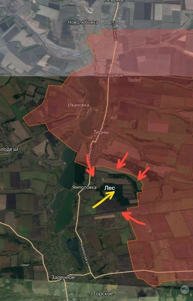 «В ходе активных боевых действий наши войска прорвали оборонительную линию вооруженных формирований Украины южнее Тернов, на 1,2 км продвинувшись в глубину обороны противника, и вошли в населенный пункт Ямполовка», - поделился подробностями происходящего Марочко.