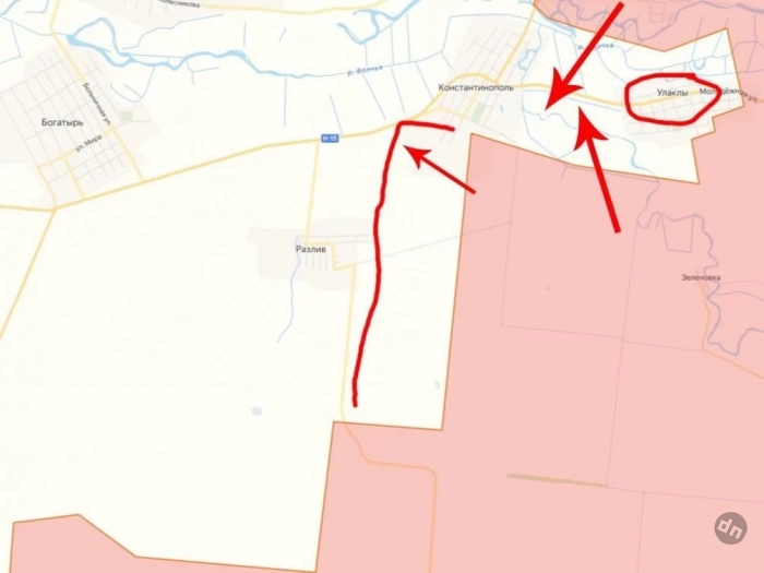 В районе Константинополя складывается критическая ситуация для четырех батальонов ВСУ, которым угрожает полное окружение. По предварительным оценкам, в этом секторе находится около 2000 украинских военнослужащих. Если российским силам удастся замкнуть кольцо, этот «котел» станет одним из крупнейших за всю историю СВО.