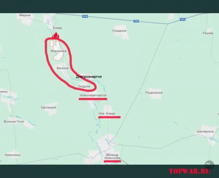Одновременно с этим российские Вооружённые силы развивают успех на Великоновосёловском направлении. Идёт продвижение вдоль реки Мокрые Ялы к северу от ранее освобождённого Нового Комара.