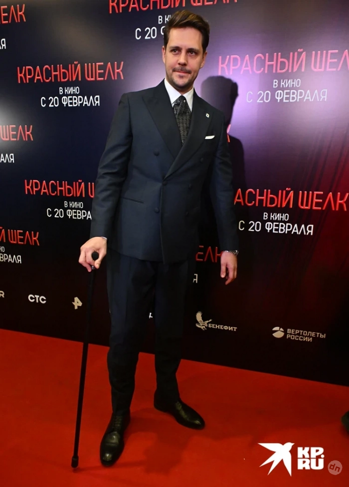 Премьера фильма «Красный шелк»: Милош Бикович вышел на дорожку с тростью, а Елена Подкаминская не справилась со шлейфом