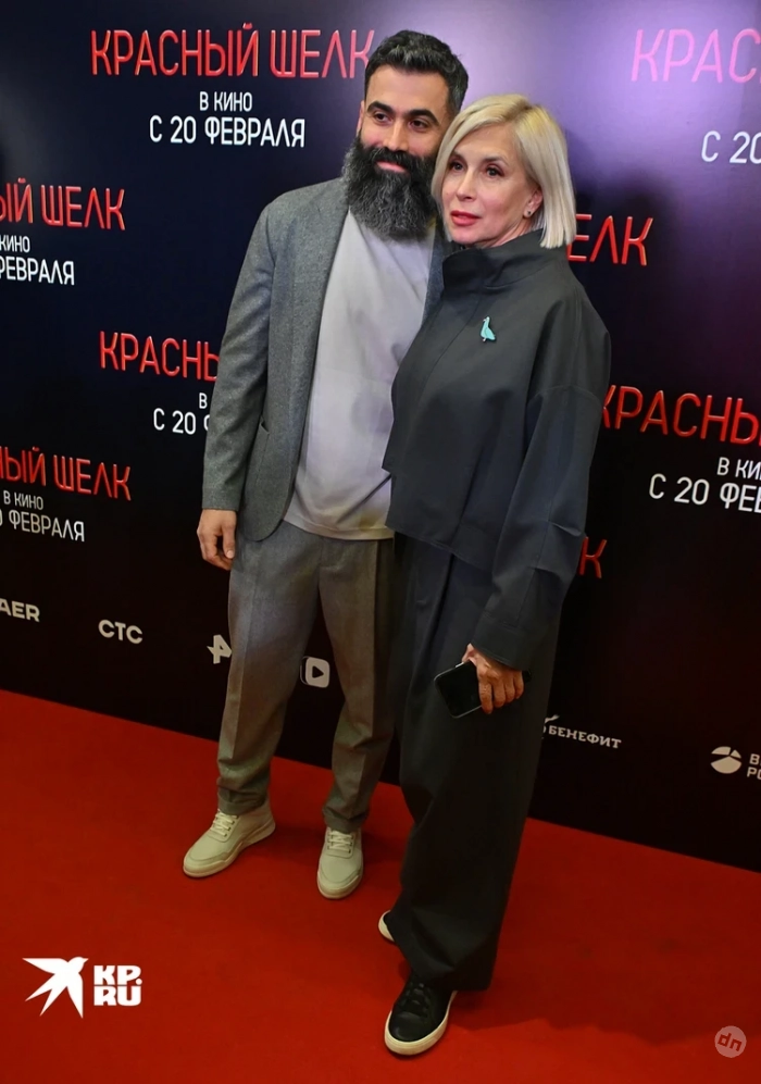 Алена Свиридова, песня которой стала саундтреком к фильму «Красный шелк», пришла на премьеру вместе с молодым бойфрендом Давидом Варданяном. Надо отметить, что певице в жизни не дашь 62 года. Выглядит она очень моложаво.