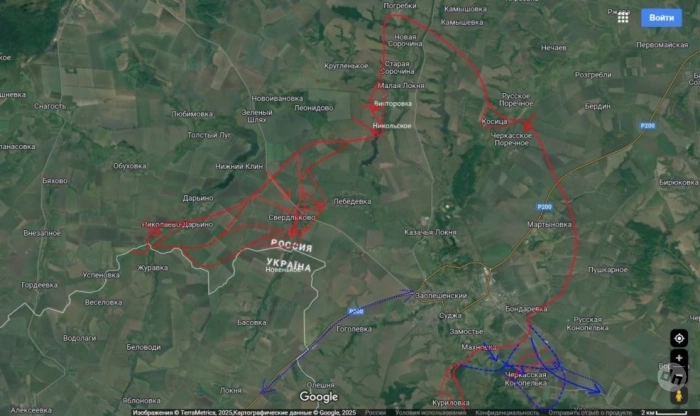 После взятия под контроль села Свердликово в Курской области, российская армия продолжила развивать успех, начав движение по долине реки Локня, на север в сторону Лебедевки и на юг в направлении Новенького. Об этом в своём Telegram-канале сообщил военный блогер Юрий Подоляка.
