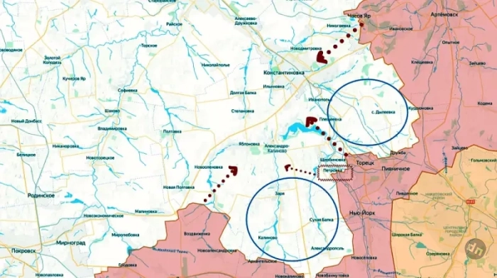 Второй полукотел для ВСУ вырисовывается северо-западнее Дзержинска. Здесь наши войска двумя клиньями идут от Часова Яра и Дзержинска на Константиновку, которая является одним из важнейших логистических и оборонительных центров ВСУ в ДНР. О возобновлении активности ВС РФ в районе Клещеевки и Андреевки под Часовым Яром начали уже рефлексировать украинские медиа.