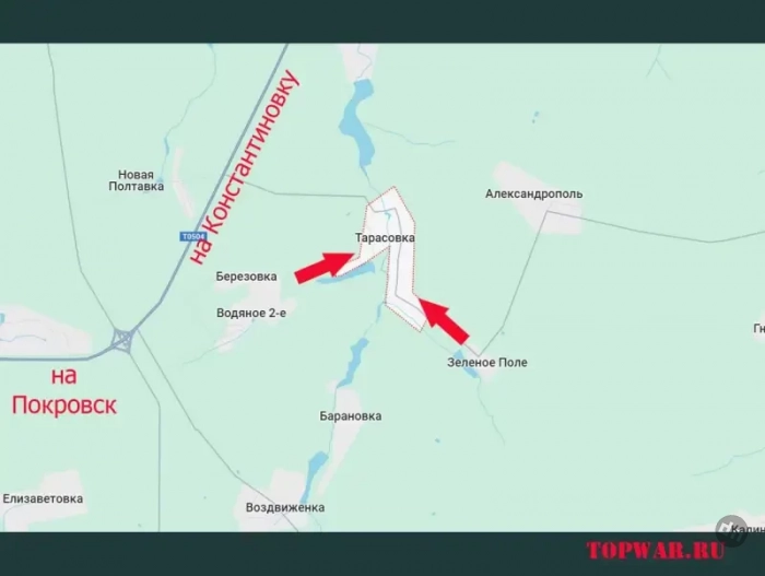 Освобождение части Тарасовки к востоку от Покровска произошло после взятия под контроль нашими бойцами нескольких соседних сёл: Зелёного Поля, Водяного Второго и Берёзовки. Они, как и Тарасовка, расположены южнее автомобильной дороги Покровск-Константиновка. Успех ВС РФ в Тарасовке позволяет не только расширить зону контроля у этой дороги, но и ближе продвинуться на Константиновском направлении.