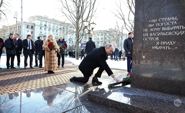 Путин принёс к памятнику букет красных роз и пообщался с Платоном. "Владимир Владимирович несколько минут о чём-то говорил с Платоном. Спрашиваю: "О чём?". Говорит: "Это между нами, но в целом говорили про учёбу", — сообщила в своём телеграм-канале 43-летняя Собчак.