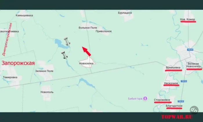 Расстояние до Днепропетровской области сокращается: армия России продвигается северо-западнее Новосёлки - к реке Вороная