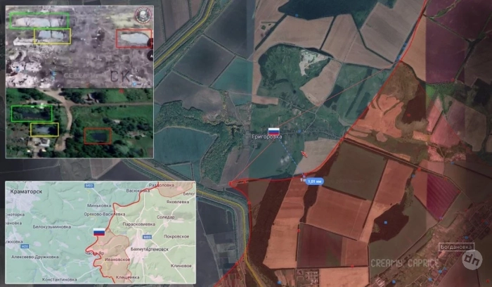 ▪️ Южнее Часов Яра, заявляют вражеские каналы, ВС России продвинулись широким фронтом от урочища «Ступки» до н.п. Курдюмовка на участке шириной до 8.5 км на глубину до 1.4 км и заняли оставшуюся часть н.п. Андреевка.