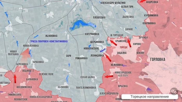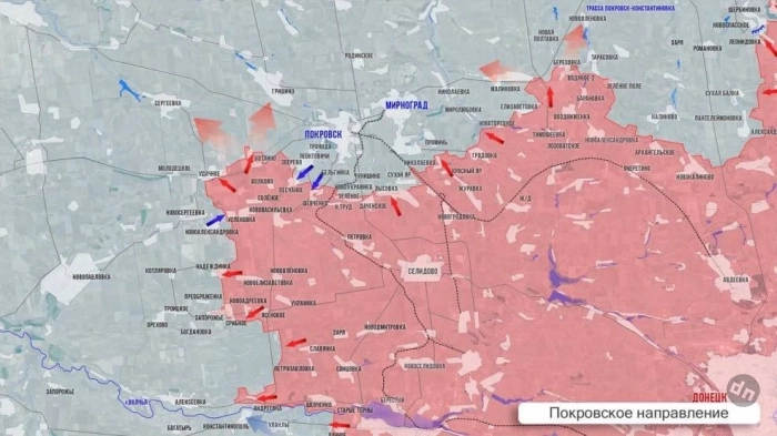 ▪️ Восточнее Покровска (Красноармейска) продолжаются бои за развязку на трассе Покровск-Константиновка, ВСУ предпринимают встречные действия. ВС России продвигаются в районе н.п. Водяное Второе. Южнее Покровска идут бои в районе Песчаного, сообщает Telegram-канал "Два майора".