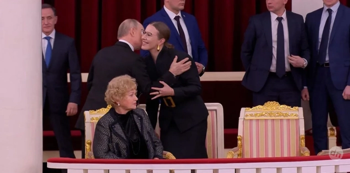 Владимир Путин на концерте памяти Анатолия Собчака/Фото: kremlin.ruВо время речи Ксения Собчак сидела рядом со своей матерью, а её муж Константин Богомолов и восьмилетний сын Платон — в другой части зала. После своего выступления Путин попрощался со вдовой Собчака Людмилой Нарусовой, а также поцеловал в щёку Ксению Собчак.