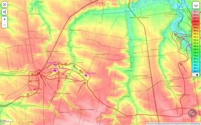 Западнее, в районе Елизаветовки и Малиновки, оборона противника более стойкая, а потому и наши атаки мене успешны. Тем не менее. Пока это не критично (хотя и неприятно и связывает руки нашим атакующим частям в районе Тарасовки). И минимум с Елизаветовкой надо что-то делать.