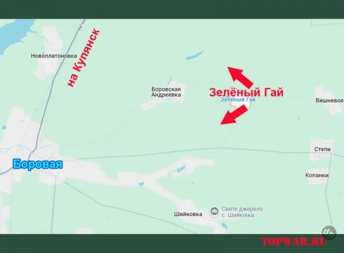 По поступающей информации, Вооружёнными силами России было освобождено село Зелёный Гай Боровского района.