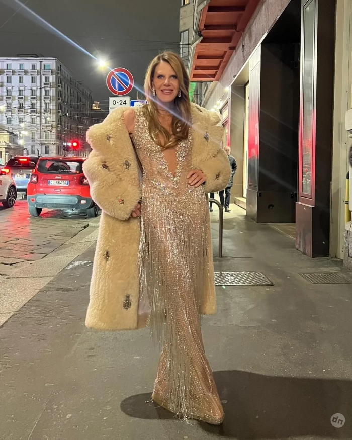Анна позировала перед камерами в полупрозрачном вечернем платье с глубоким декольте, украшенном блестящими стразами. Сверху она накинула белое меховое пальто, а финальным штрихом стали минималистичные серебряные серьги и голливудская укладка.