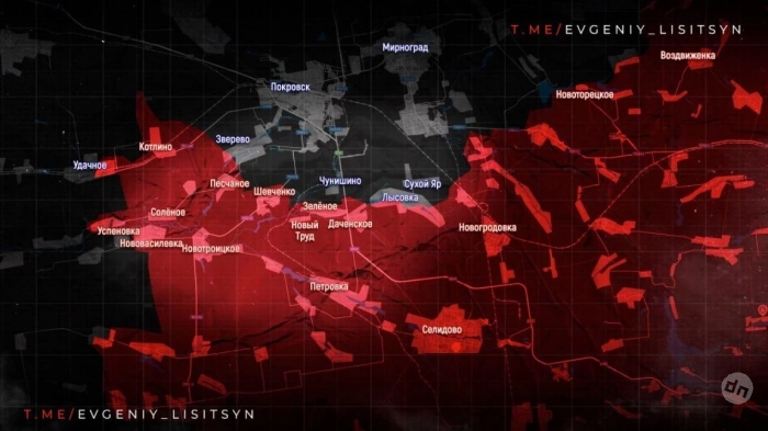 На Покровском (Красноармейском) направлении идут бои вблизи н.п. Зелёное Поле, Водяное Второе, Песчаное, Котлино, Удачное и Андреевка.