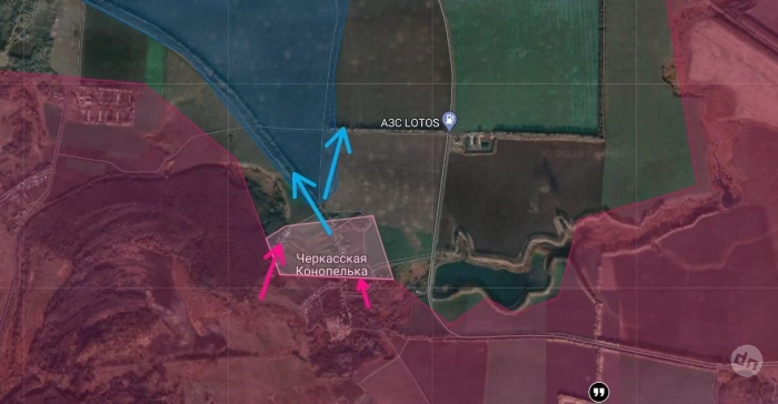 Российские войска имеют тактические успехи в Черкасской Конопельке, продвинулись в центральной части, а также на западном берегу р. Псёл в районе Куриловки.