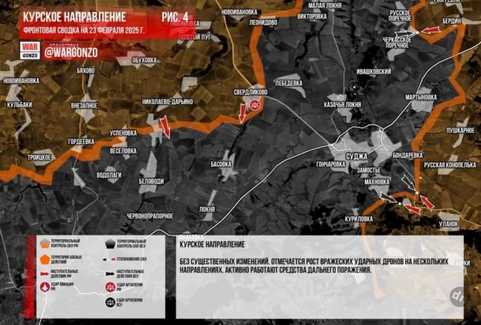 Свежая карта боевых действий в Курской области от 23.02.2025