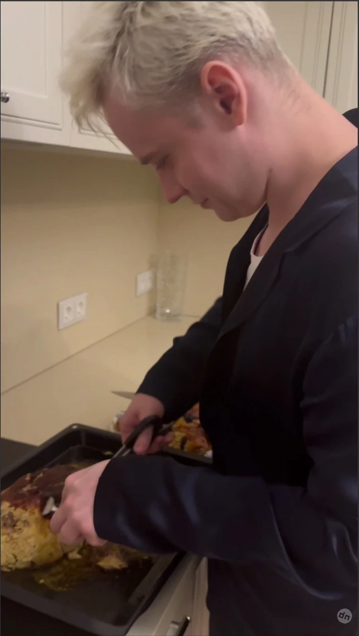 Ярослав на кухне разделывал курочку, которую ему приготовила Екатерина. Фото: соцсети.