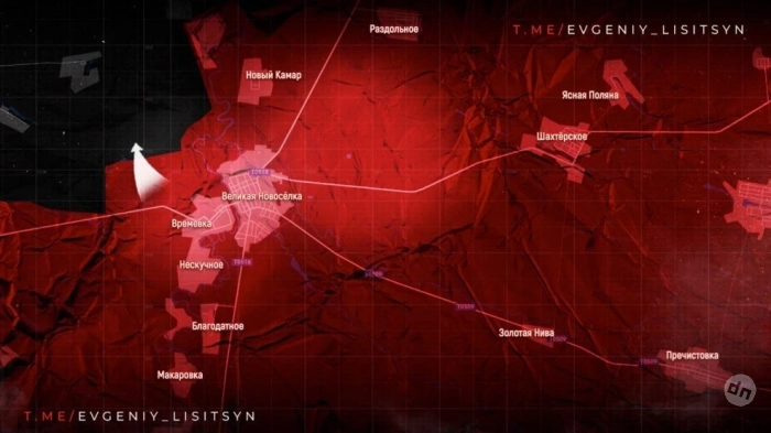 На Новопавловском направлении в районе Великой Новосёлки наши парни продвинулись к северу от Раздольного, к юго-востоку от Новодаровки и к востоку от Ольговского.