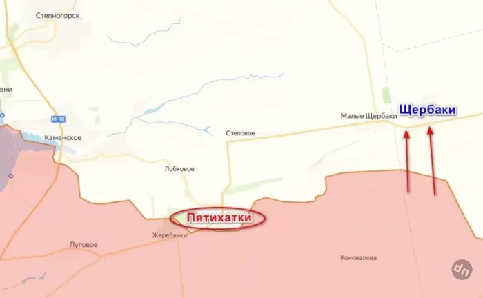 Кстати, бои идут не только в районе Пятихаток, накануне наши атаковали восточнее в районе села Щербаки, причем успешно. Согласно имеющимся данным, штурмовики взяли два мощных опорника ВСУ в районе этого села, но в самый населенный пункт пока не заходили.