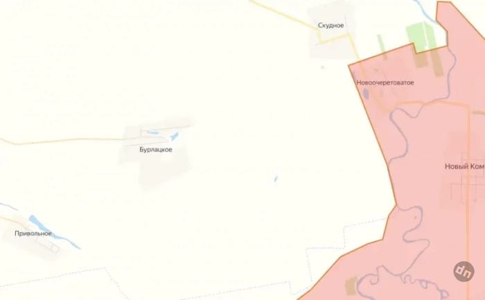 Подразделения российской армии продолжают выдавливать силы противника в районе населенных пунктов Бурлацкое, Привольное и Скудное к северо-западу от Большой Новоселки.