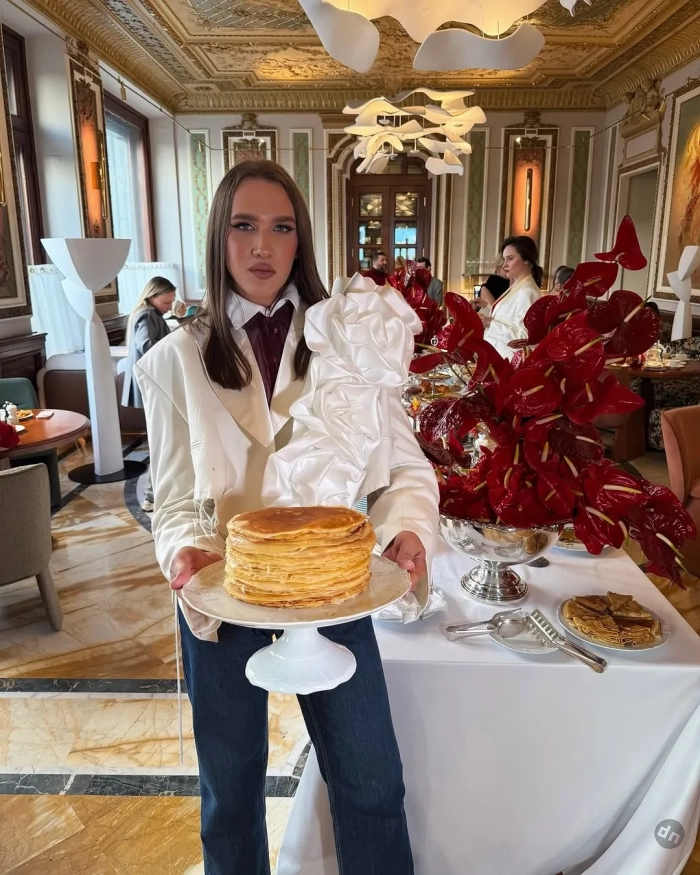 Хозяйка праздника встречала гостей в красном платье Magda Butrym и золотых ботфортах. Селебрити отмечали масленичную неделю хороводами, пением народных песен, а в качестве угощений их ждали блины, чёрная и красная икра, оливье, сырники и пирожки. Место проведения праздника Шелягова выбрала "из-за года Есенина": в ресторане поэт встречался со своей возлюбленной Айседорой Дункан.