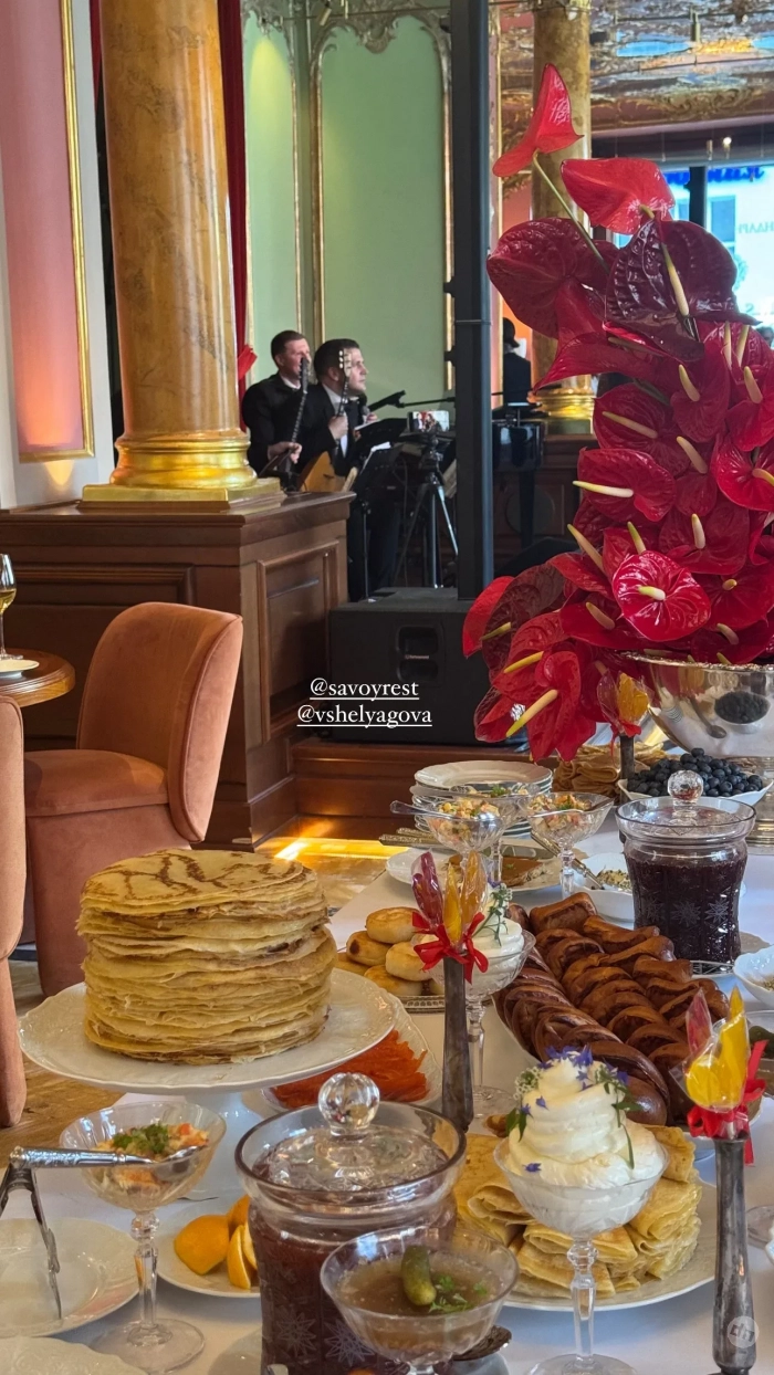 Виктория Шелягова собрала друзей с размахом отметить светскую Масленицу в столичном ресторане Savoy. Под народные песни пели и плясали: Андрей Малахов, Алексей Жидковский, певица Зара, Юлия Паршута, Стеша Маликова, Екатерина Земская, Карина Нигай, Павел Камин, Евгений Бороденко, Олег Шелягов и многие другие.