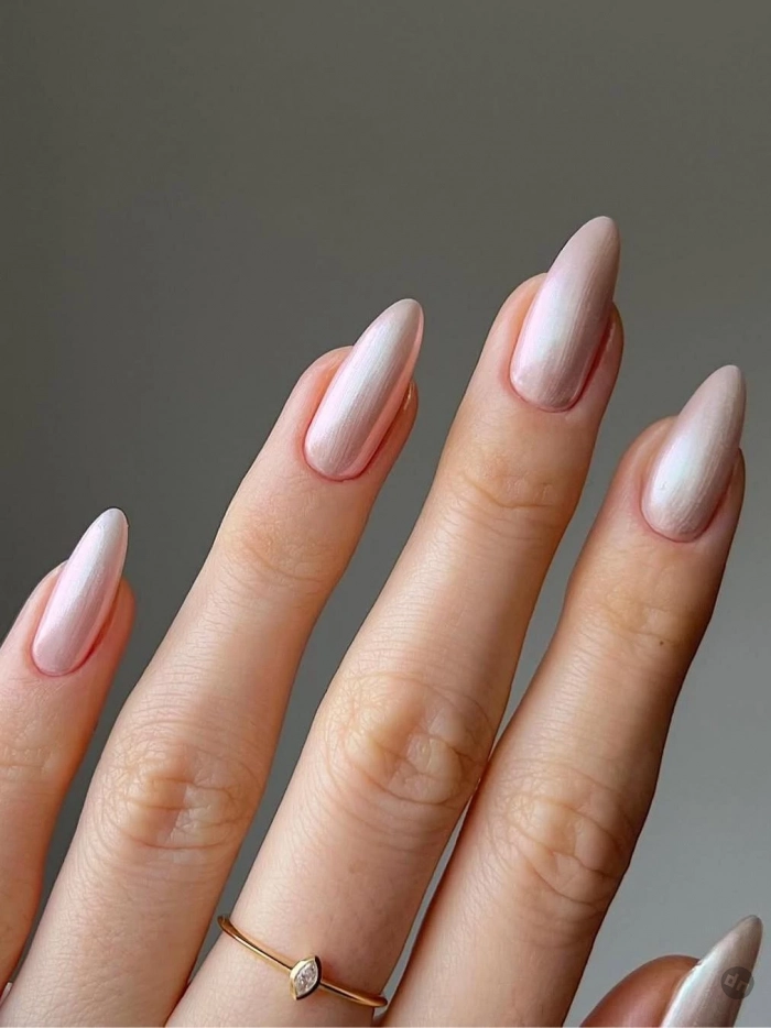 Молочно-розовый маникюр — это отличная альтернатива классическому нюду. Этот тон олицетворяет утренний рассвет, когда первые лучи солнца касаются легкой дымки тумана. Переливы перламутра придают этому оттенку многогранность, а мягкие пастельные тона создают атмосферу легкости и элегантности, что прекрасно подойдет для привлечения удачи.