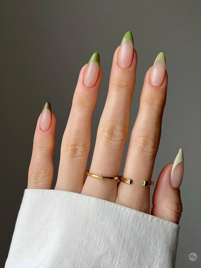 Зеленый френч — это идеальный маникюр для весны. Он символизирует свежесть, обновление и пробуждение природы. Выбирайте оттенки от мягкого фисташкового до глубокого изумрудного — каждый из них принесет свою порцию удачи. Яркие зеленые оттенки добавят динамики и энергии, а пастельные — подчеркнут вашу женственность и элегантность.