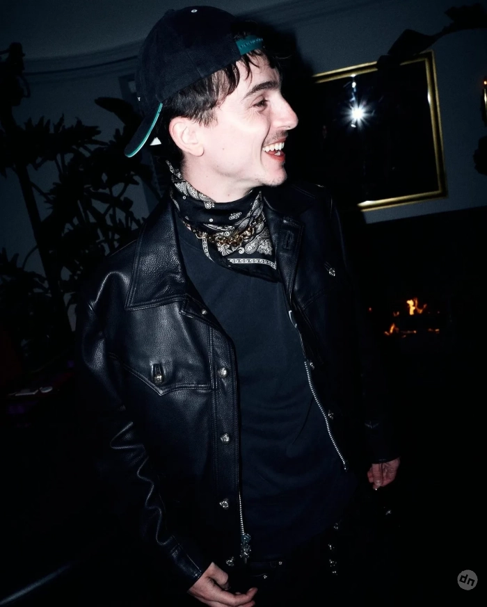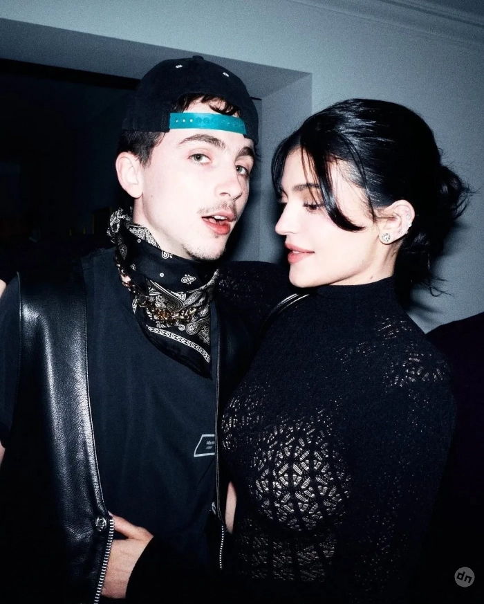Кайли надела прозрачное чёрное кружевное платье, а Тимоти выбрал чёрную футболку, кожаный жилет и бандану. На совместном снимке пара обнималась и выглядела счастливой.