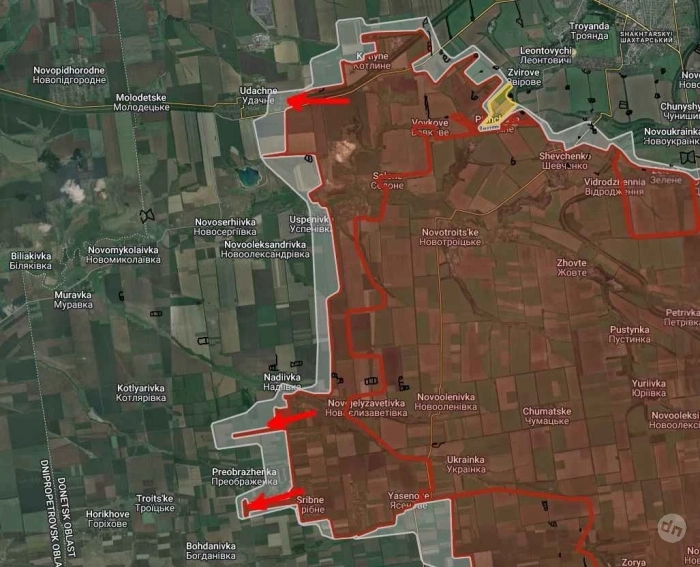 Также российские войска продвинулись в районе Скудное на участке шириной до 1.55 км., отмечаются интенсивные боестолкновения в Скудном и Бурлацком.