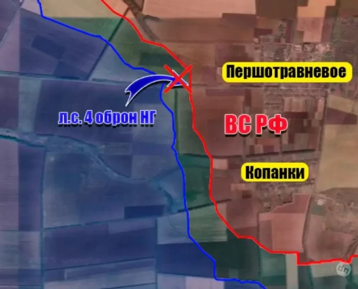В российских ТГ-каналах отмечается, что ВС России на этом направлении удалось продвинуться на расстояние до полукилометра западнее населённого пункта Першотравневое.