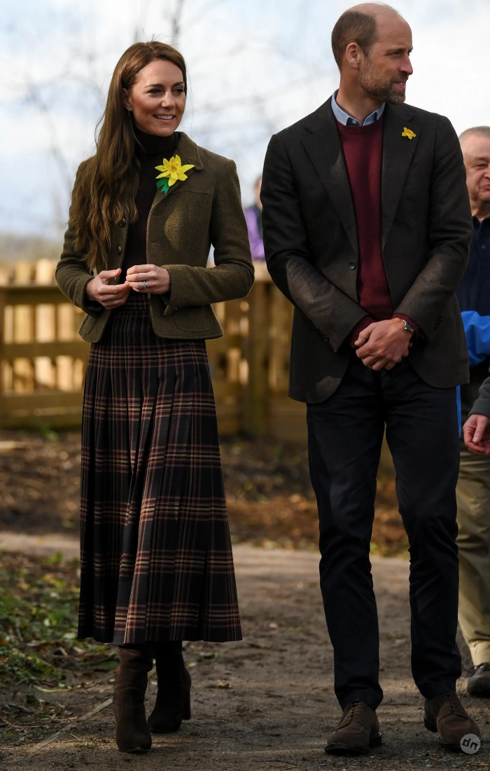 Кейт Миддлтон и принц Уильям/Фото: PrinceAndPrincessOfWales/Instagram*Для выхода Кейт, которая всё чаще появляется на публике, выбрала ярко-красное пальто Alexander McQueen в цвет флага Уэльса, дополнив его коричневой водолазкой и высокими замшевыми сапогами. Позже она сменила пальто на пиджак в оливковых тонах. На груди у неё был нарцисс, как и у принца Уильяма, который был одет в голубую рубашку, пиджак, бордовый джемпер, синие брюки и замшевые ботинки.