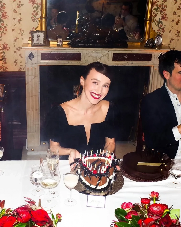 Мэри встречала гостей в нуарном образе: она надела бархатное платье self-portrait с баской, с лаковыми туфлями с острым мысом и коготками в тон, дополнив образ красной помадой. "Выходные в Лондоне в честь дня рождения. Двадцать с чем-то! Спасибо всем за тёплые пожелания", — подписала Мэри снимки, которые сделал её друг и фотограф Герман Ларкин.