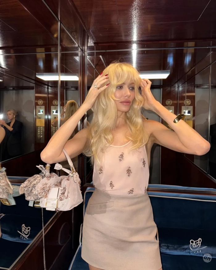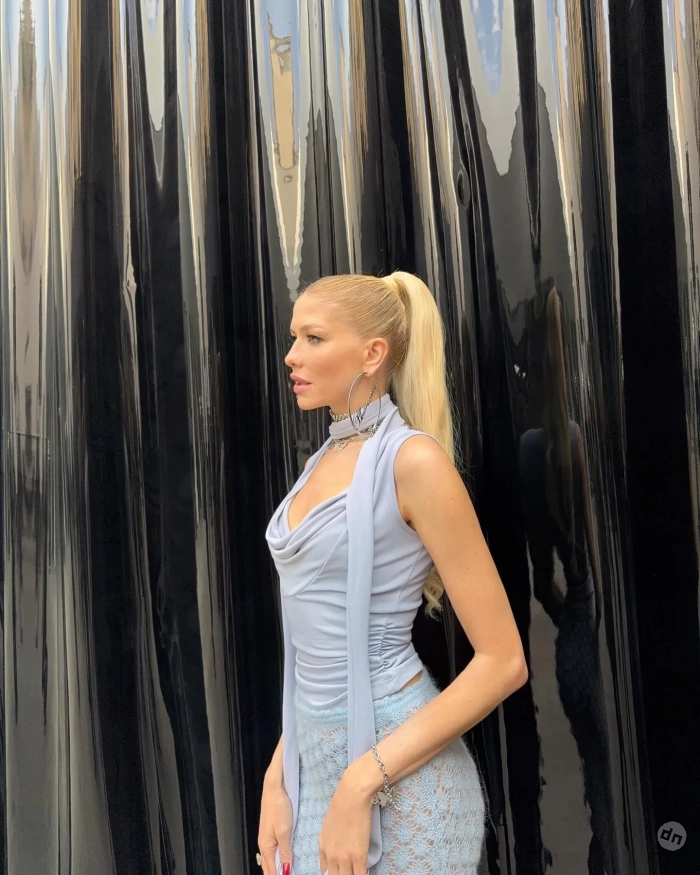 За последнее время Елена Перминова посетила несколько знаковых показов в рамках Недели моды в Париже и Милане. На мероприятиях 38-летняя модель блистала в нарядах, в которых часто преобладали прозрачные ткани и открытые ноги. Так, на показе Fendi светская львица появилась в бежевой мини-юбке и прозрачном боди. От нижнего белья она отказалась, а завершением образа стал парик с длинными волнистыми волосами блонд. Тренд на отказ от белья Перминова продолжила на показе Blumarine, выбрав романтичный голубой комплект, а вчера она посетила шоу Prada, где позировала перед камерами в трендовых микрошортах.