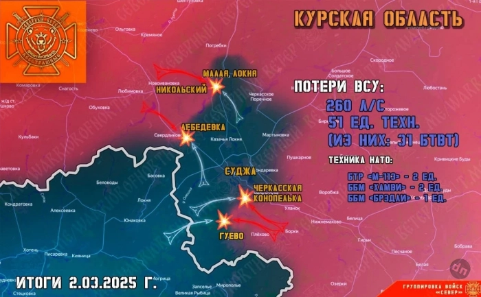 ВС РФ в Курской области ведут ожесточённые бои в районе Малой Локни: свежие данные на 03.03.2025