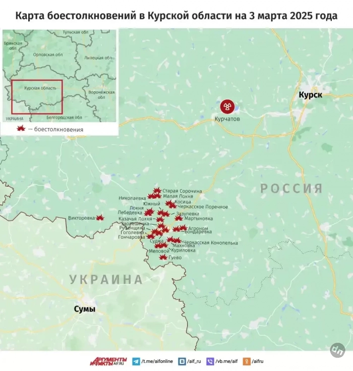 Свежая карта боевых действий в Курской области. Информация на 3 марта