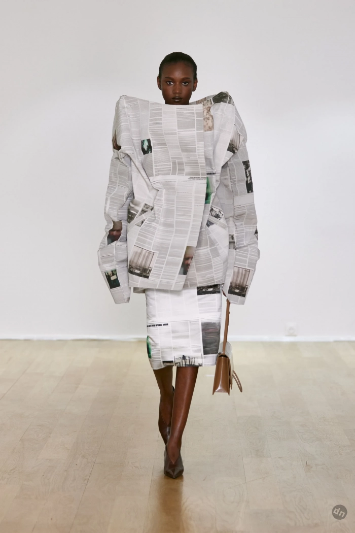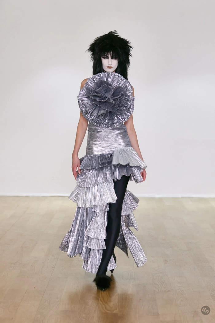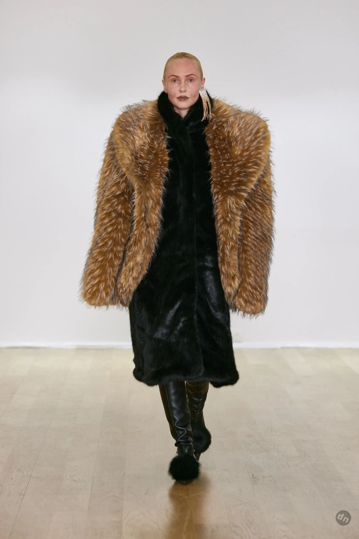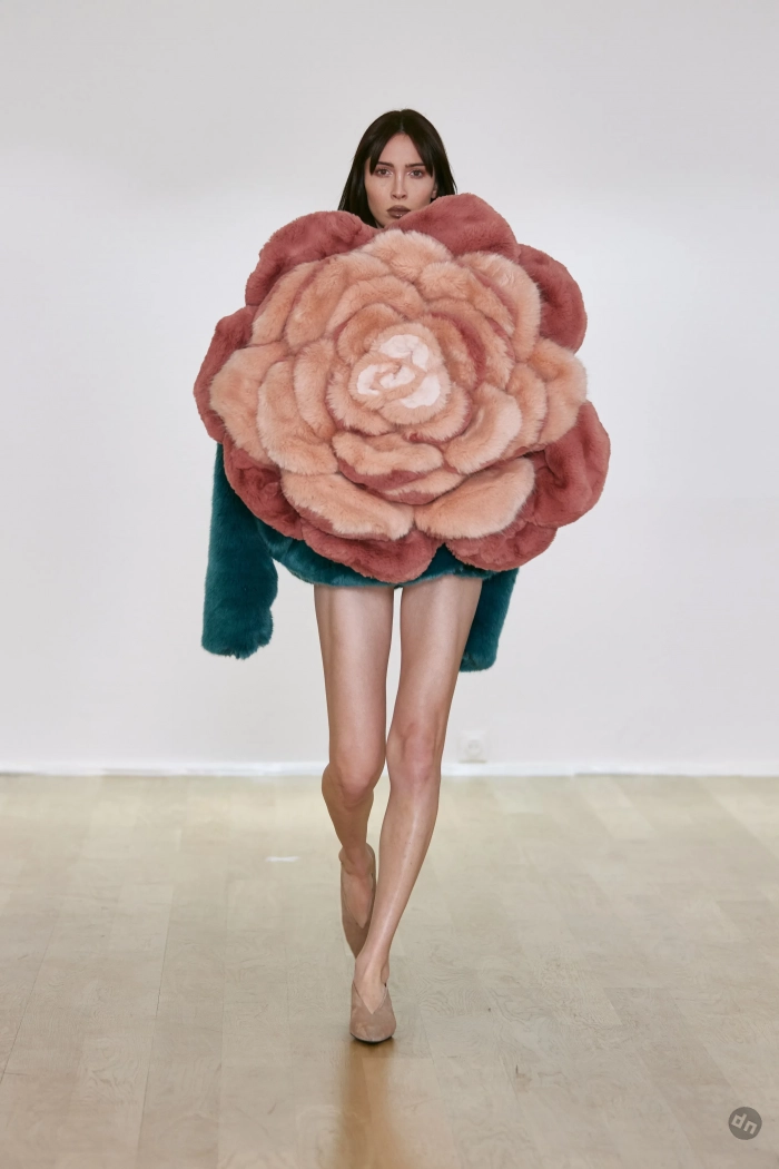 Ольга Карпуть прошлась по подиуму в двух шубах, кожаных сапогах и с моносерьгой, состоящей из "магазинной бирки" и двух серёг на ней. Также основатель бренда Abra Абрахам Ортуно Перес представил изделия с цветочным и газетным принтами, с декором в виде массивного цветка и платье из "фольги".