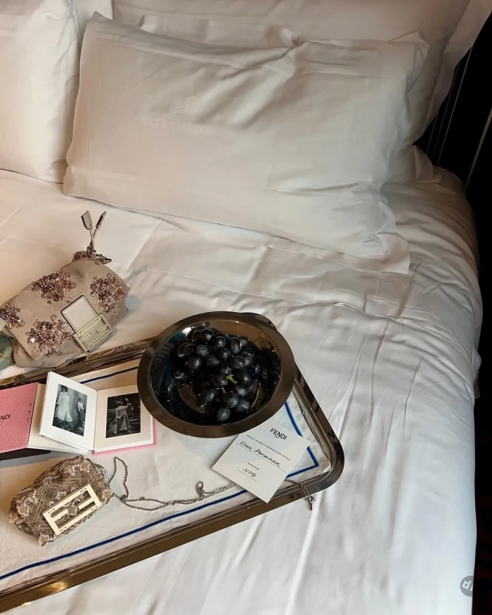 Ольга Карпуть, наоборот, прилетает на Недели моды как на работу. Основательница концепт-стора КМ20 провела в Италии несколько дней и документировала в соцсетях, как проходят её будни. Бизнесвумен посетила показы Moschino и Blumarine, поужинала с друзьями в ресторане Cipriani, показала, как готовится к выходам в номере отеля, и сделала фото на память с Рафом Симонсом после шоу Prada.