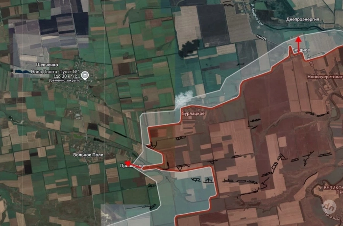 На Бурлацком направлении российские войска давят в направлении Днепроэнергии. Под контроль ВС РФ перешло Привольное.