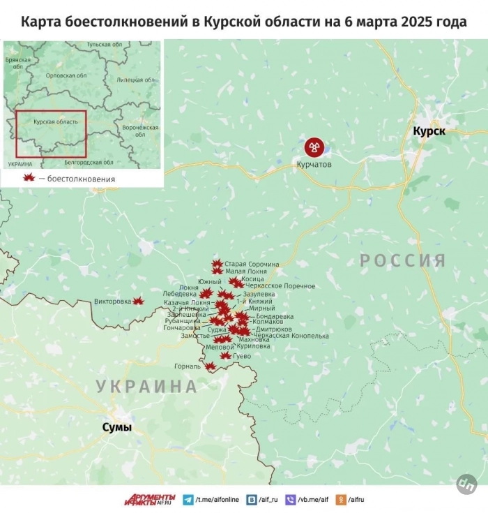 Свежая карта боевых действий в Курской области. Данные на 06.03.2025