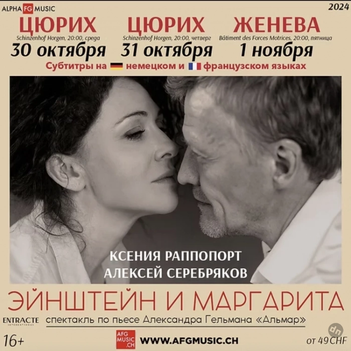 — Алена Хмельницкая и Алексей Серебряков впервые оказываются вместе на одной сцене в спектакле о большой любви на фоне исторических событий «Эйнштейн и Маргарита», — сказано в описании обновленного спектакля.